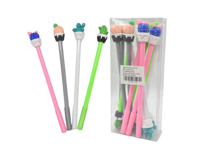 Lapiceras tinta de gel negro con cactus x12 unidades
