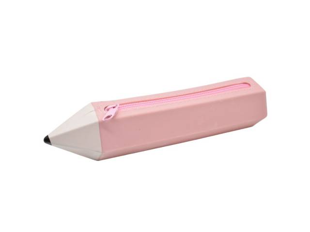 Cartuchera de silicona con forma de lápiz 22x5cm. Rosa